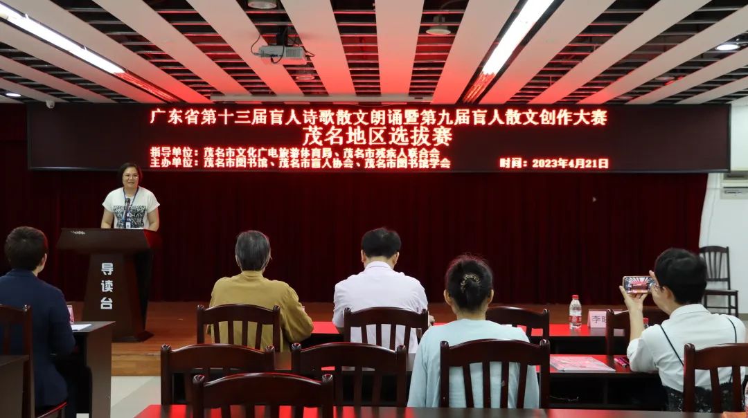 4月21日上午,第十三届盲人诗歌散文朗诵暨第九届盲人散文创大赛茂名地区选拔赛在茂名市图书馆隆重举行。来自茂名各地区的盲人朋友们用声音和文字表达他们对生活的热爱和对未来的期盼,充分体现了他们积极进取、乐观向上的人生态度,反映了他们热爱阅读、自强不息的精神风貌。