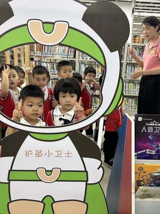 在图书馆三楼少儿中心设立“护苗小卫士”动漫卡通,引导读者与“护苗小卫士”拍照发圈,积极参与护苗主题活动,倡导绿色阅读、文明上网理念,保护未成年人文化权益,净化网上网下文化环境,提升青少年网络素养,引导青少年树立保护知识产权理念,自觉抵制非法出版物。