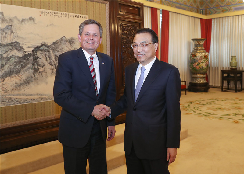 国务院总理李克强3月27日下午在中南海紫光阁会见美国联邦参议员戴恩斯率领的议员访华团。