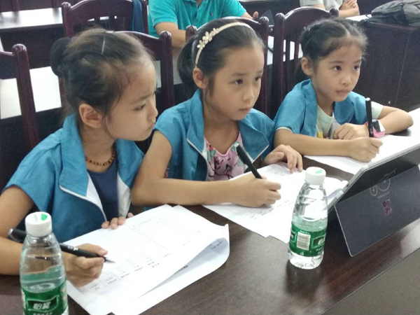 9月22日下午,市图书馆四楼大会议室,“发现图书馆之美”摄影比赛在进行紧张的现场作品评审,七名穿着蓝色志愿者衣服的小朋友坐在评委席上,认真而严肃的对每一幅作品进行打分。