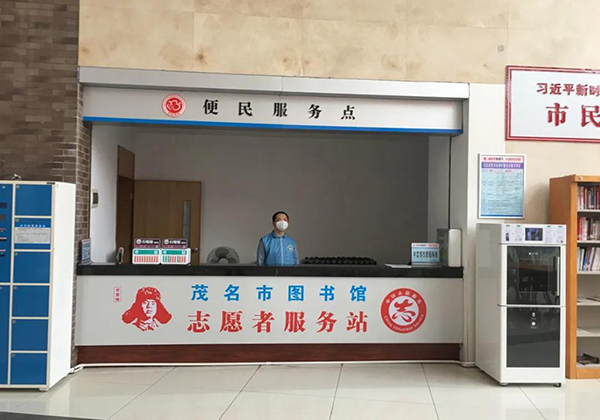 2019~2020年,茂名市图书馆志愿者服务站(便民服务点)成立,志愿者管理更具规范化,志愿者管理制度不断完善,便民服务点全日制安排工作人员或志愿者值守,解答志愿者的咨询、组织申请以及报名参加志愿活动的相关事宜,同时为到馆读者提供入馆指引以及解答读者相关咨询。便民服务点备有爱心雨伞、安全药箱、老花眼镜等便民物品,提供广大读者应急之需。
