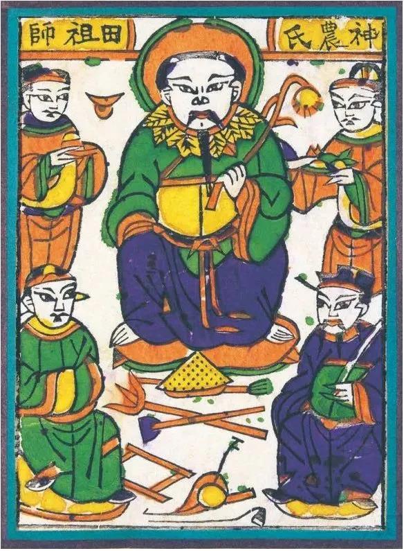 《神农氏田祖》(套版,清代,朱仙镇,中央美术学院图书馆藏,23×16cm)