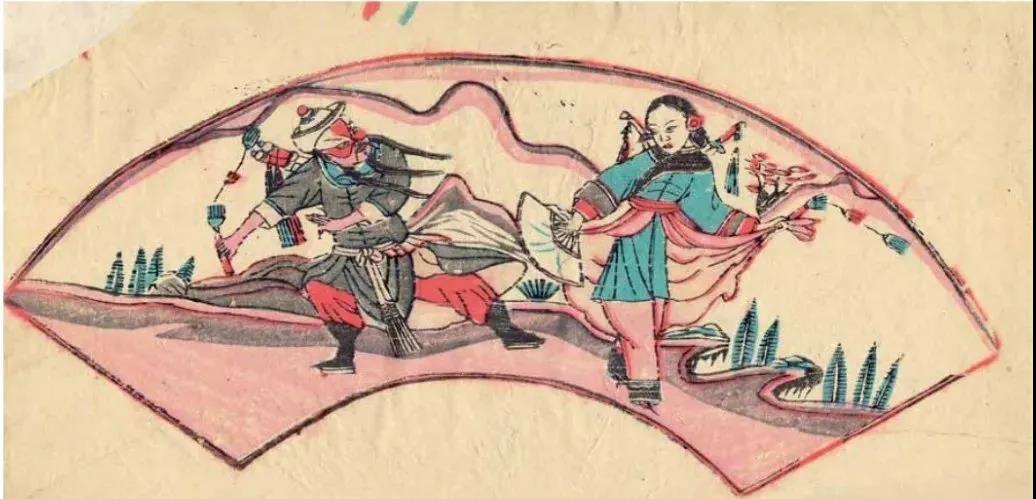 《王小赶脚》(套版,清代,朱仙镇天义画店,中央美术学院图书馆藏,24×26cm)
