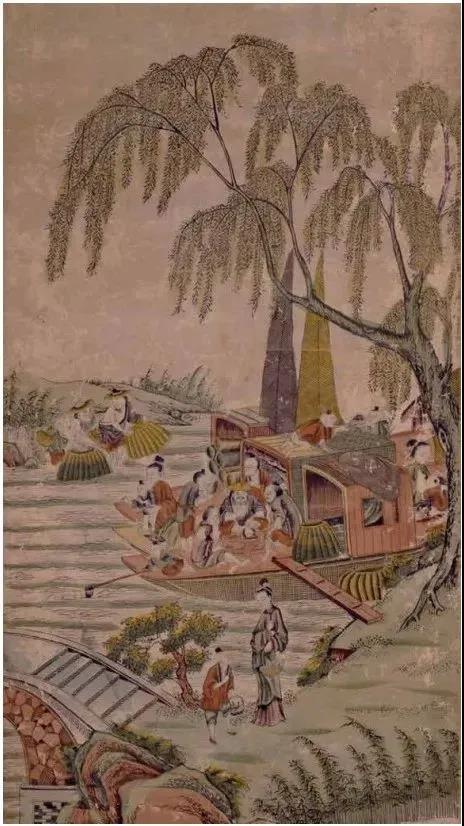 《渔家同乐图》(线版手绘,清代·乾隆,桃花坞,海杜美术馆藏,93×52cm)