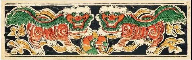 这种横幅画,既可作为窗画,也可作炕围子使用。图案多为瑞兽花鸟等吉祥物,可连续横贴。