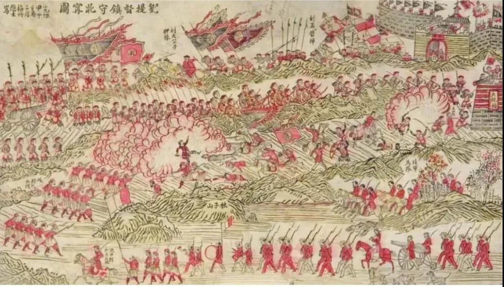 《刘提督镇守北宁图》(套版,一八八四,福州,伊尔库茨克州艺术博物馆藏,34×61cm)