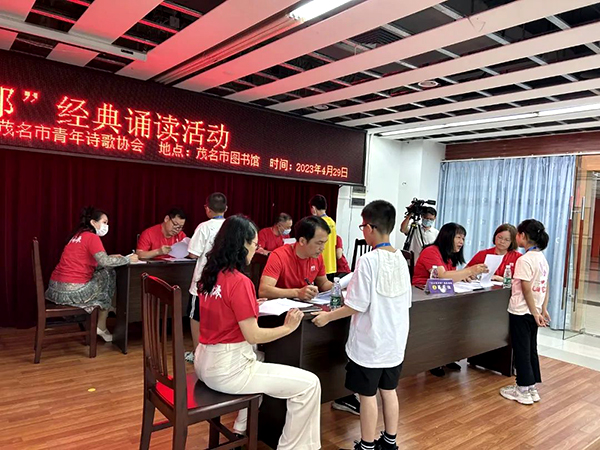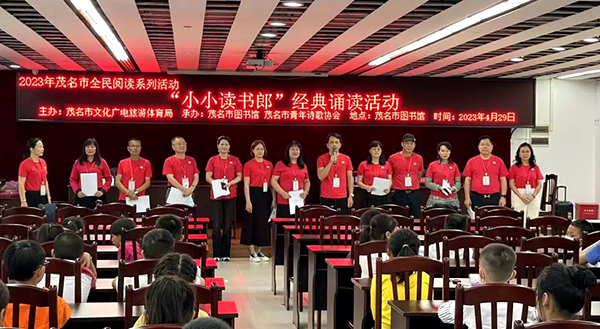 为了在青少年读者中营造一种诵读经典、继承民族优秀文化传统的良好风气,2023年4月29日下午,由茂名市文化广电旅游体育局主办,茂名市图书馆和茂名市青年诗歌协会共同承办的“小小读书郎”经典诵读竞赛活动在市图书馆四楼大会议室举行。