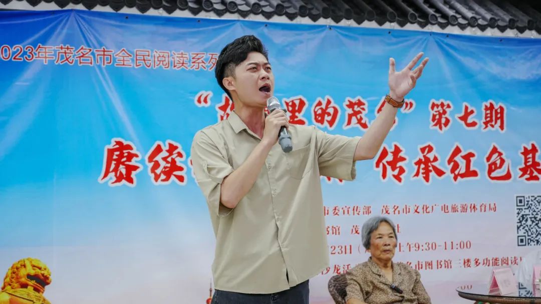 七月,写满红色的记忆,写满红色的理想,写满红色的里程。七月,由茂名市委宣传部、茂名市文广旅游体育局指导,茂名市图书馆、茂名日报社主办,“故事里的茂名”举行第七期访谈活动,主题是“赓续红色血脉 传承红色基因”。活动邀请了李卡烈士的女儿李水田、化州市委党史研究室三级调研员陈刘雄以及音乐剧《我在黑暗中等待黎明》李卡的扮演者张楚华,进行了一场讲好党的故事、革命英雄的故事的对话。
