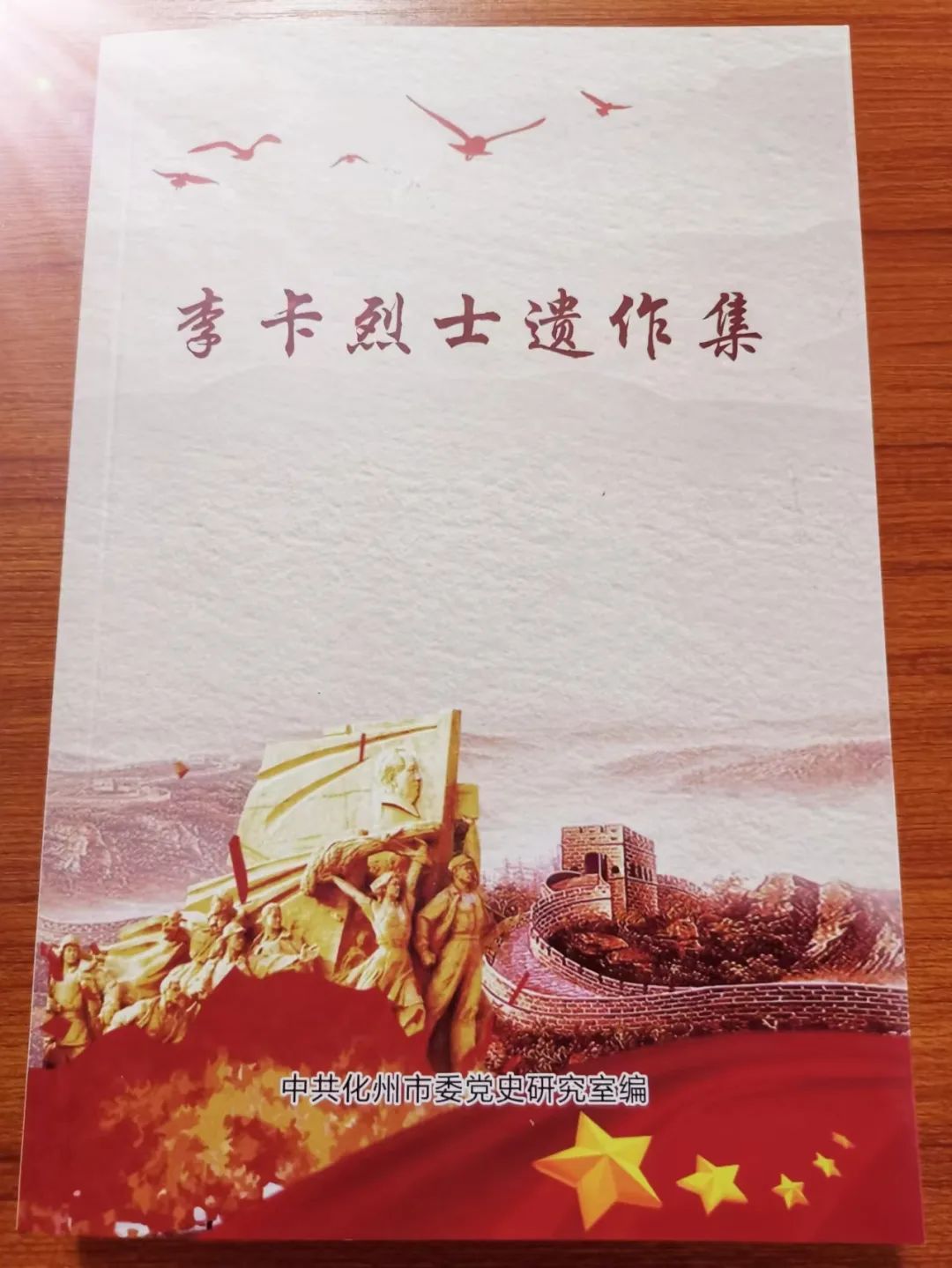 为了能够让更多人了解到李卡烈士的故事,化州市党史研究室整理研究李卡烈士的史料多年,曾走访多地寻访李卡烈士的家人、战友,最终编写成《李卡烈士遗作集》。陈刘雄说:“出版这部书意义重大,我们编写这部书从2013年开始搜集资料,2019年响应中央号召,搞好党史学习教育活动,着手编写《李卡烈士遗作集》,2021年正式出版,在我们党建党100周年之际,终于献上一份厚礼。”在陈刘雄看来,红色文化研究工作以及党史学习教育对于青少年来说十分重要,是党员牢记初心使命、推进中华民族伟大复兴历史伟业的必然要求,也是党员坚定信仰信念、在新时代坚持和发展中国特色社会主义的必然要求。希望青少年们能够通过学习和了解革命先烈的故事,从中汲取砥砺奋进的精神动力。