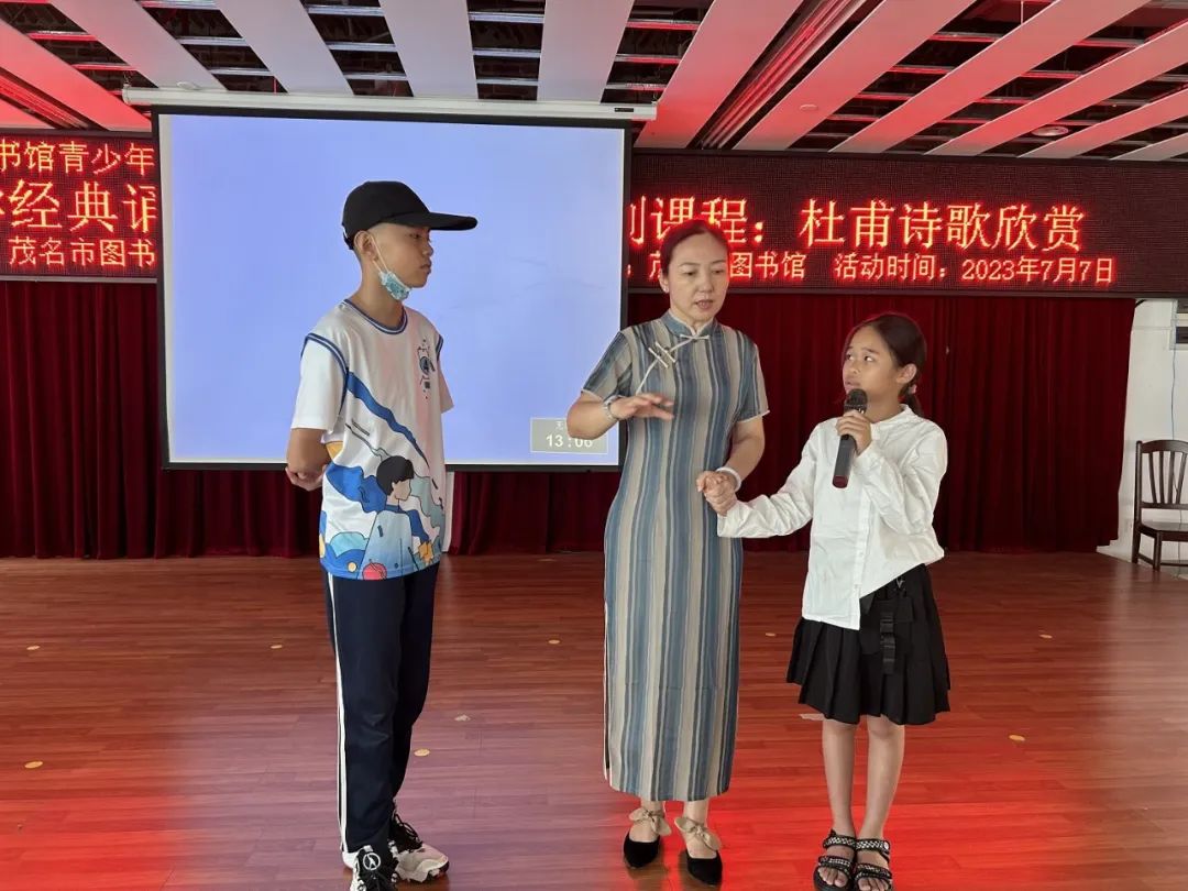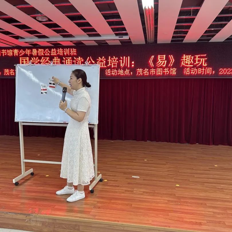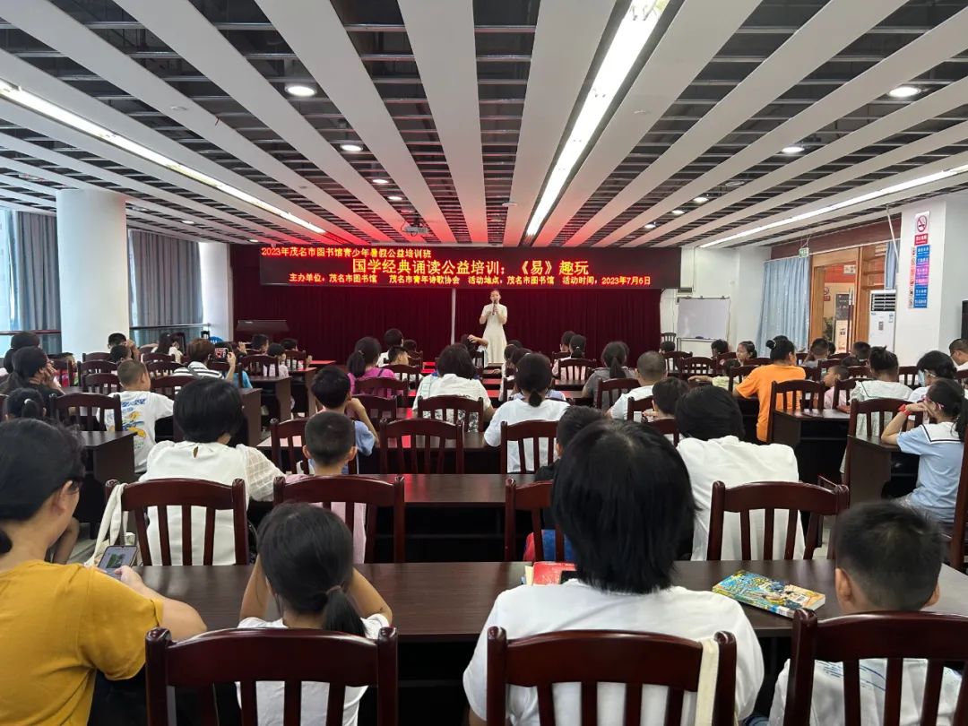 为了积极发挥图书馆作为青少年第二课堂的作用,丰富青少年课余生活,提升青少年综合素养,增强青少年走进图书馆、利用图书馆的意识,突出图书馆免费开放的公益性、普惠性原则,2023年7月6日—9日,茂名市图书馆在四楼大会议室举办2023年茂名市图书馆青少年暑假公益培训班第一期国学经典诵读培训班,吸引了不少青少年读者前来报名参加,第一期课程获得圆满完成。