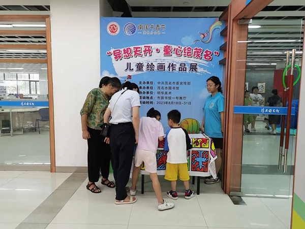 为迎接2023年南国书香节的到来,丰富广大青少年读者的暑期文化生活,2023年8月18日上午,由中共茂名市委宣传部主办,茂名市图书馆承办,明华美术协办的“异想天开·童心绘茂名”儿童绘画作品展暨儿童现场绘画活动在市图书馆一楼1号展厅举办,吸引了不少青少年读者参与,活动获得圆满成功。