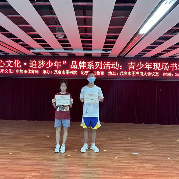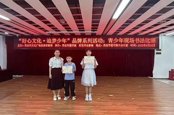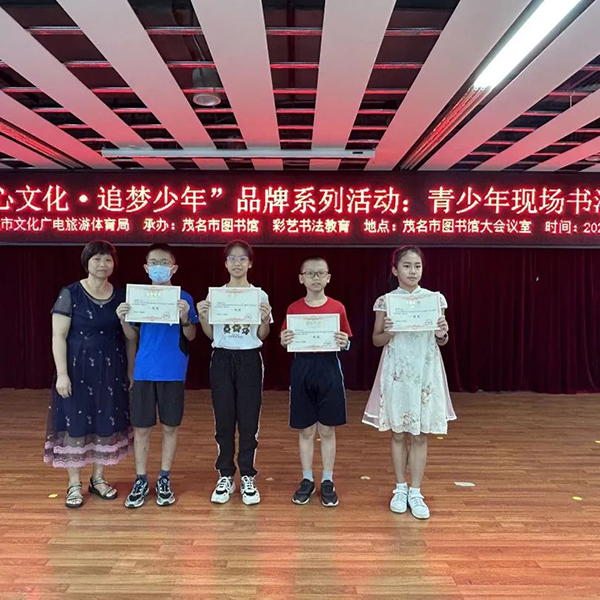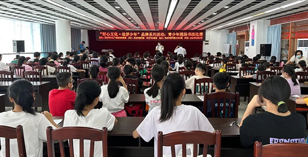 为了深入学习贯彻党的二十大精神,以习近平新时代中国特色社会主义思想为指导,弘扬民族优秀书法文化,感受民族精神、革命精神的伟大力量,鼓励广大青少年勇接历史文化的接力棒,不断传承党的二十大精神,弘扬爱国主义精神,2023年8月20日上午,由茂名市文化广电旅游体育局主办,茂名市图书馆承办,茂名市彩艺文化传播有限公司协办的“好心文化·追梦少年”品牌系列活动:青少年现场书法比赛在市图书馆四楼大会议室举行。