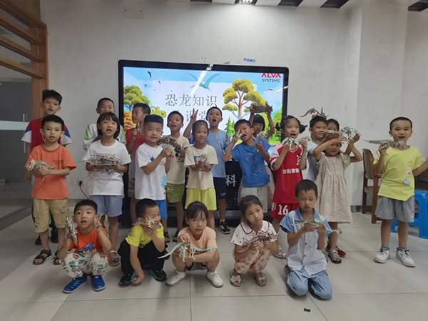 活动现场,主讲老师以ALVA 4D百科大屏互动机为载体,通过立体趣味化的AR阅读方式向小读者讲述了恐龙生活的时代、生活环境、肉食恐龙和植食恐龙的习性、恐龙灭绝的原因等等百科内容,似乎所有小朋友都对恐龙情有独钟,纷纷化身为“恐龙小专家”讲述着自己熟悉的恐龙。小读者和家长还通过手机端APP“捕捉”炫酷的恐龙进行创意合照,体验AR互动的奇妙。随后,家长和孩子们共同组装了恐龙模型,孩子们的脸上洋溢着幸福欢乐的笑容,手捧着自己制作的“活恐龙”互相展示着。