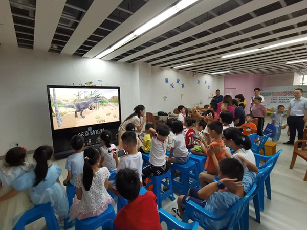 8月18日,南国书香节系列活动“AR百科互动之裸眼看恐龙”亲子阅读活动,在茂名市图书馆一楼读者阅读空间如期进行。活动还未开始,就有很多小朋友早早到场,大家热情高涨,迫不及待的想要活动快点开始,本次活动共吸引了35组家庭参与。
