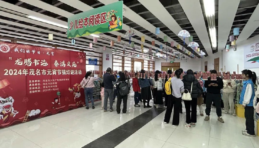2月24日元宵佳节,“龙腾书海 春满文苑”2024年茂名市元宵节猜灯谜活动在市图书馆三楼少儿中心举行。本次活动准备了500余条灯谜,内容涵盖了生活常识、传统文化、历史知识等诸多方面,吸引了众多读者前来参与。通过活动,进一步弘扬中华传统文化,丰富读者们的传统文化知识,以寓教于乐的方式让读者们度过一个欢乐喜庆且有书香味的元宵佳节。