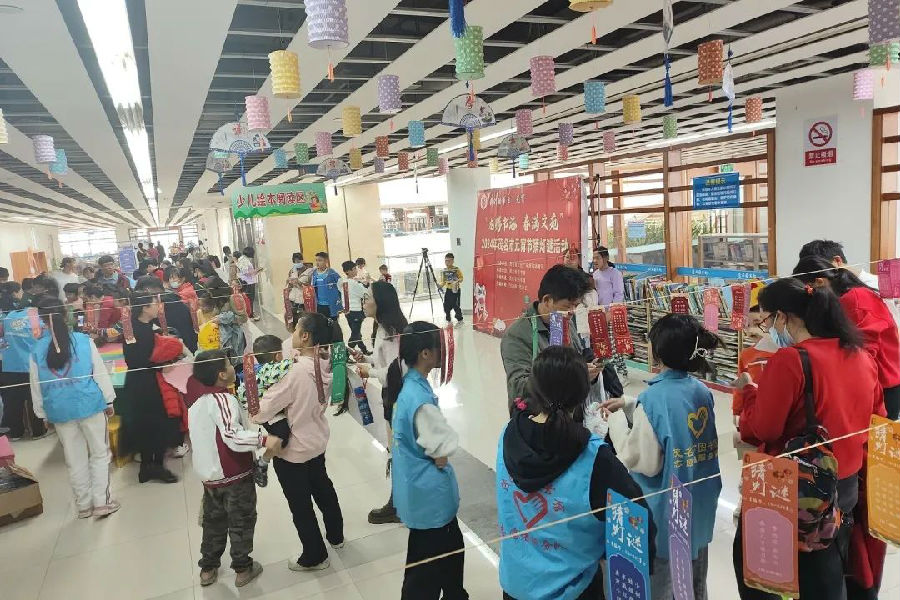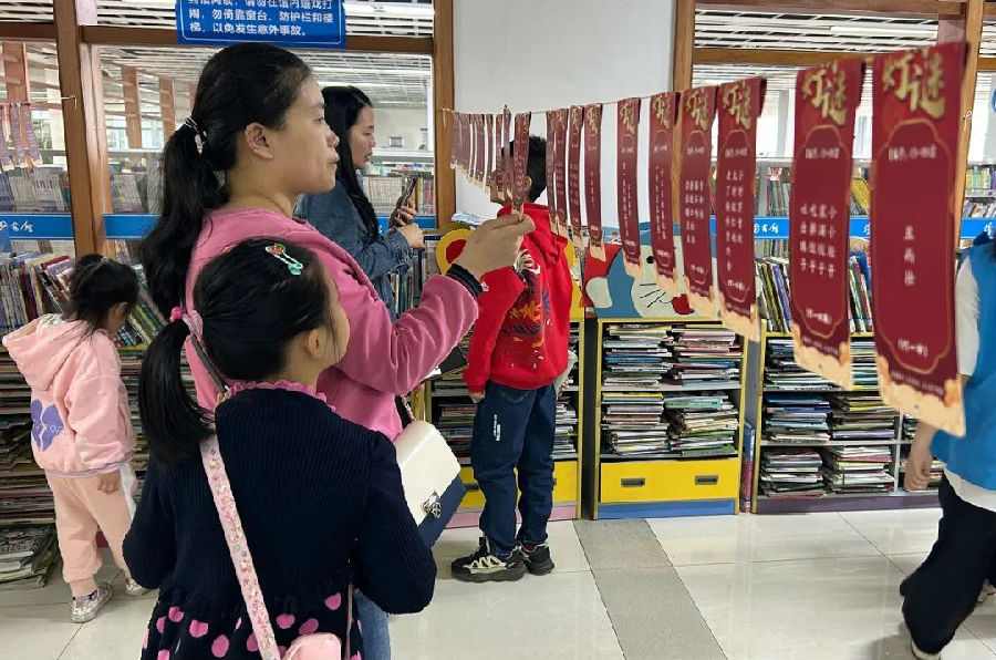 活动现场热闹非凡、妙趣横生,洋溢着浓郁的节日氛围。悬挂的500余条谜面卡片,吸引了众多读者驻足参与竞猜,大家被一条条看似简单却充满深意的谜面吸引。