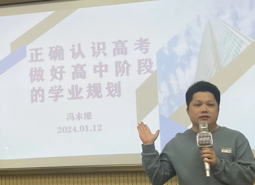 此次活动邀请了茂名市图书馆冯木维老师,结合自己多年的丰富经验为参与活动的学生讲解学业规划的概念和重要性、高考志愿填报等内容。