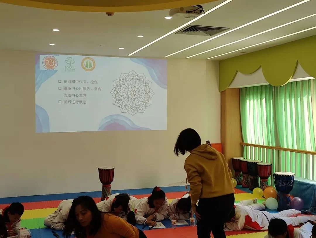 随后,市祥和中学心理咨询室柯金花老师和李丽老师为学生们开展心理团体辅导课。课堂上,老师们组织同学们进行了“无敌毛毛虫”、“曼陀罗绘画”、“爆破烦恼气球”“团队传输能量球”、“放飞梦想飞机”五个小游戏。游戏旨在培养同学之间的团结性,引导同学们对内在心理进行觉察,更好地了解自我、认识自我,并进一步帮助他们在生活中获得更多的正向反馈,强化内心建设。