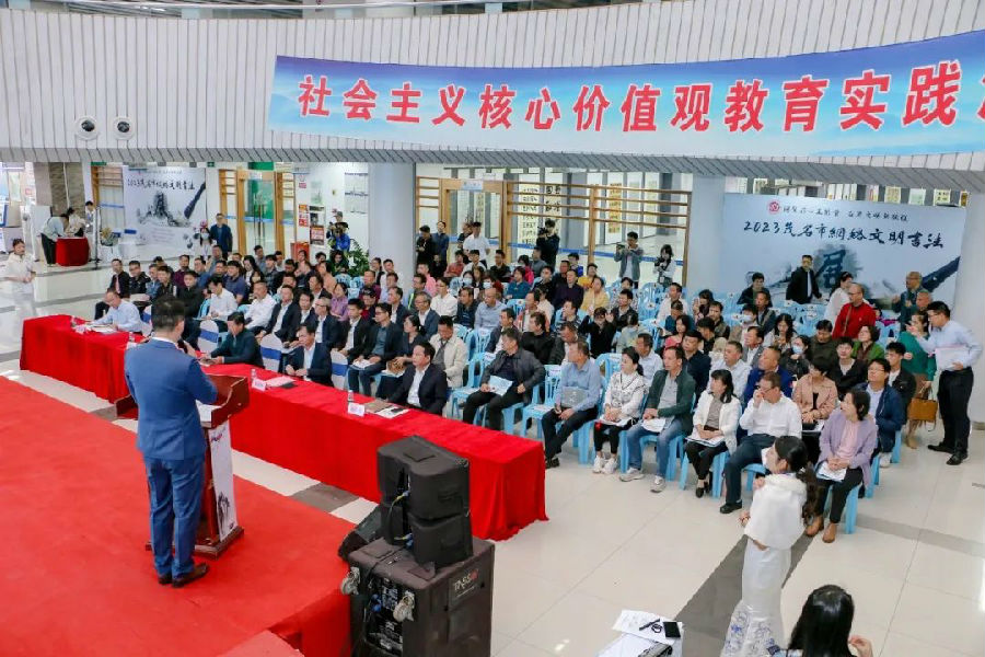 为贯彻落实习近平总书记对网络安全和信息化工作作出的重要指示精神,做强网上正面宣传,培育积极健康、向上向善的网络文化,奋力书写新时代网络文明新篇章,2023年11月16日上午,由市委网信办、市文明办主办的,茂名市书法家协会、茂名市图书馆协办的2023年茂名市网络文明书法展在市图书馆一楼举行了开幕式,市委常委、宣传部部长张惠灵等领导嘉宾出席开幕仪式。