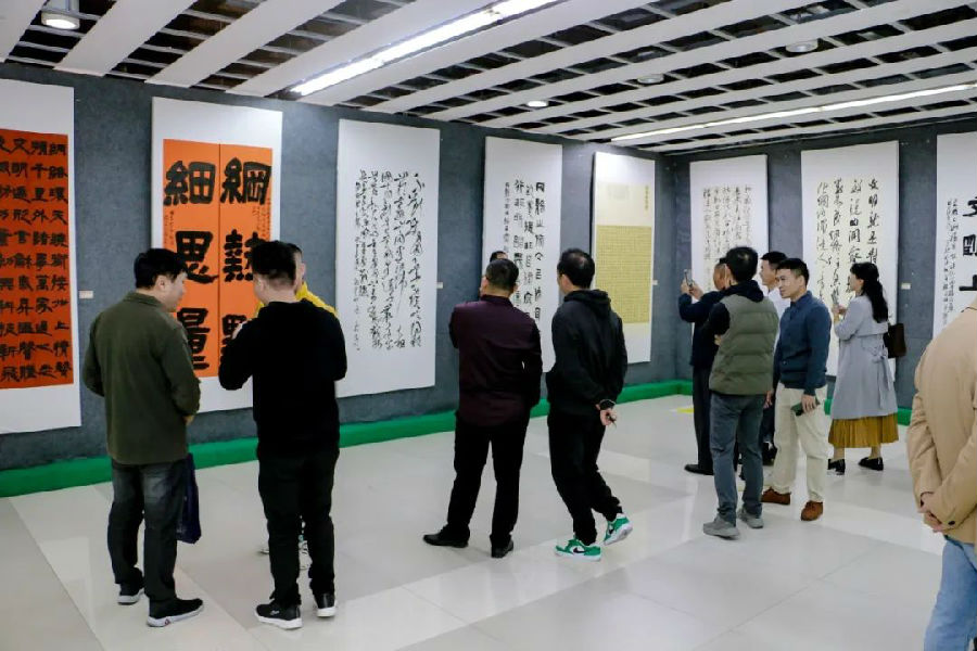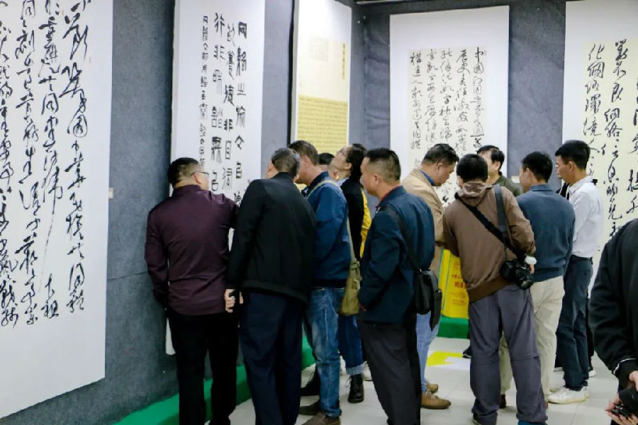 现场展览作品书法笔走龙蛇、行云流水,“篆、隶、真、草、行”五体兼备。作品形式多样、内涵丰富具有较高的艺术水平。