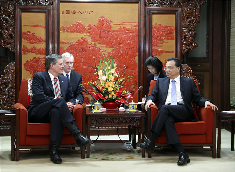国务院总理李克强3月27日下午在中南海紫光阁会见美国联邦参议员戴恩斯率领的议员访华团。