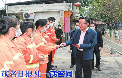 在市新冠肺炎防控领导小组(指挥部)办公室,许志晖看望慰问指挥部工作人员,听取春节期间疫情防控工作情况汇报,询问了解是否有从中高风险地区回来的人员、农村地区及返乡人员防疫工作如何落实等情况。他强调,指挥部要高效运作,上下联动,加强督查督办,确保“戴口罩、亮码行、测体温、少聚集”等各项疫情防控措施落地落实,精准做好重点人群、重点场所疫情防控工作,为人民群众生命健康和茂名经济社会发展保驾护航。希望指挥部工作人员保持最佳状态,心情愉悦,积极主动,认真履职,在疫情防控工作中实现自我价值,做到家庭和事业并茂。