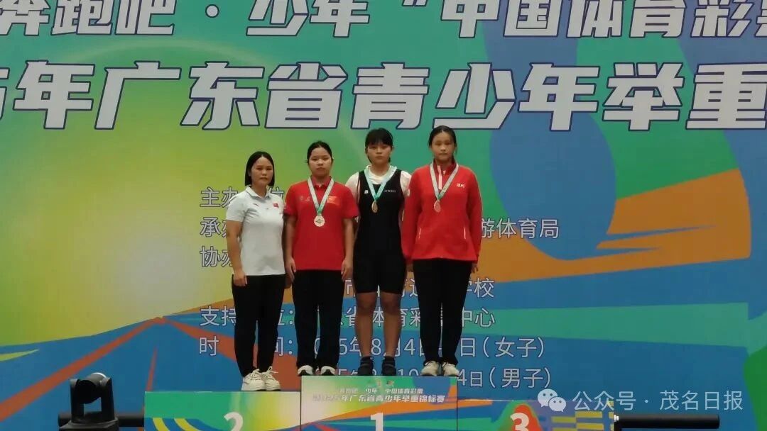 8月5日2025年广东省青少年举重锦标赛在茂名市体育运动学校继续展开第二天赛事🏋️🏋️♂️🏋️♀️女子丙组64公斤级赛事中,我市选手柯子雯面对广州市代表队两名强劲对手的夹击,在抓举中失利只获铜牌,但在挺举比赛中放手一搏,最终险胜对手,获得该级别的挺举和总成绩金牌。在晚上进行的女子丙组71公斤级比赛中,我市选手尹思晨和曾满怡携手共夺得三金两银一铜,其中尹思晨挺举90公斤和总成绩155公斤均打破省青少年举重锦标赛纪录。